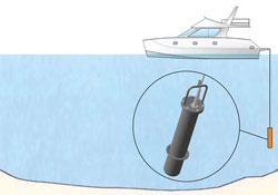 ?AT6104DM 主機所探測到的數(shù)據(jù)通過特殊電纜傳輸?shù)剿娴碾娔X上,可以即時看到水下的數(shù)據(jù)。