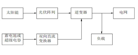 下圖是一個太陽能光伏并網發電系統示意圖,該系統由太陽能、光伏陣列、雙向直流變換器、蓄電池或超級電容和并網逆變器構成。