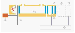 微流紅外傳感器技術(shù)的工作原理為:紅外光源①發(fā)出的紅外光,經(jīng)過(guò)切光器②調(diào)制頻率后,進(jìn)入測(cè)量氣室④;由于二氧化硫等異種原子構(gòu)成的分子對(duì)紅外光具有吸收特性,若測(cè)量氣室④中存在上述氣體,則進(jìn)入測(cè)量氣室的部分紅外光會(huì)被吸收,未被吸收的紅外光進(jìn)入檢測(cè)器⑤。檢測(cè)器⑤由前氣室、后氣室、微流傳感器⑥組成,前、后氣室充滿待測(cè)組分的氣體。在紅外光的作用下,檢測(cè)器前、后氣室中的氣體發(fā)生膨脹;由于存在膨脹差異,會(huì)導(dǎo)致前、后氣室之間產(chǎn)生微小的流量;微流傳感器⑥檢測(cè)到該流量后,產(chǎn)生交流電壓信號(hào),信號(hào)經(jīng)處理后得到氣體的濃度。