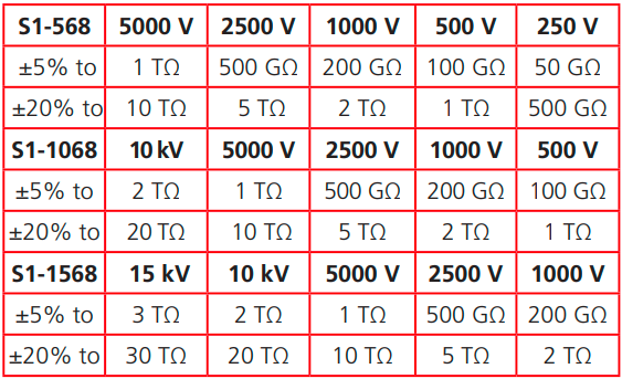 250V, 500V, 1000 V, 2500 V,5000 V, 10000 V, 15000 V, VL
